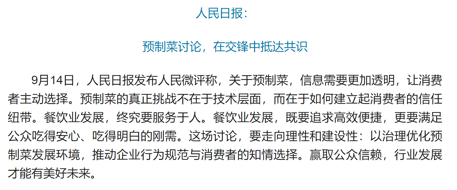 預(yù)制菜不僅是餐飲工業(yè)化的產(chǎn)物,也是現(xiàn)代生活方式的體現(xiàn),其未來發(fā)展的關(guān)鍵應(yīng)在“敢于透明”。唯有以技術(shù)升級(jí)推動(dòng)健康轉(zhuǎn)型,以真誠溝通重建消費(fèi)者信任,預(yù)制菜才能真正走向更廣闊的大眾市場。